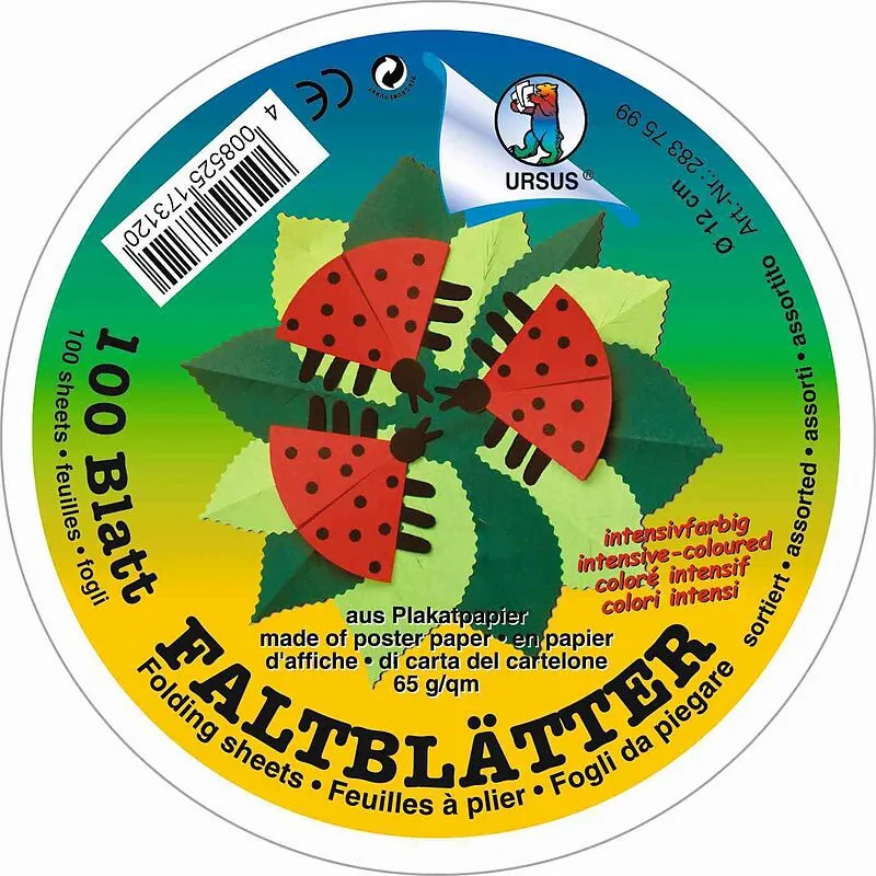 100 Faltblätter intensiv aus Plakatkarton (65 g/m, Durchmesser: 12 cm, sortiert in 10 Farben) - "Made in Germany" URSUS-Qualität: durchgefärbt, hohe Farbbrillanz und Lichtbeständigkeit 100 Blatt