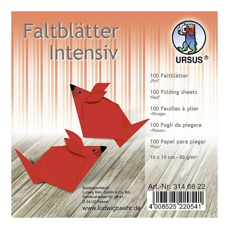 100 Faltblätter "Uni" intensiv aus Plakatkarton (65 g/m, Format: 10 x 10 cm, rot) - "Made in Germany" URSUS-Qualität: durchgefärbt, hohe Farbbrillanz und Lichtbeständigkeit 100 Blatt