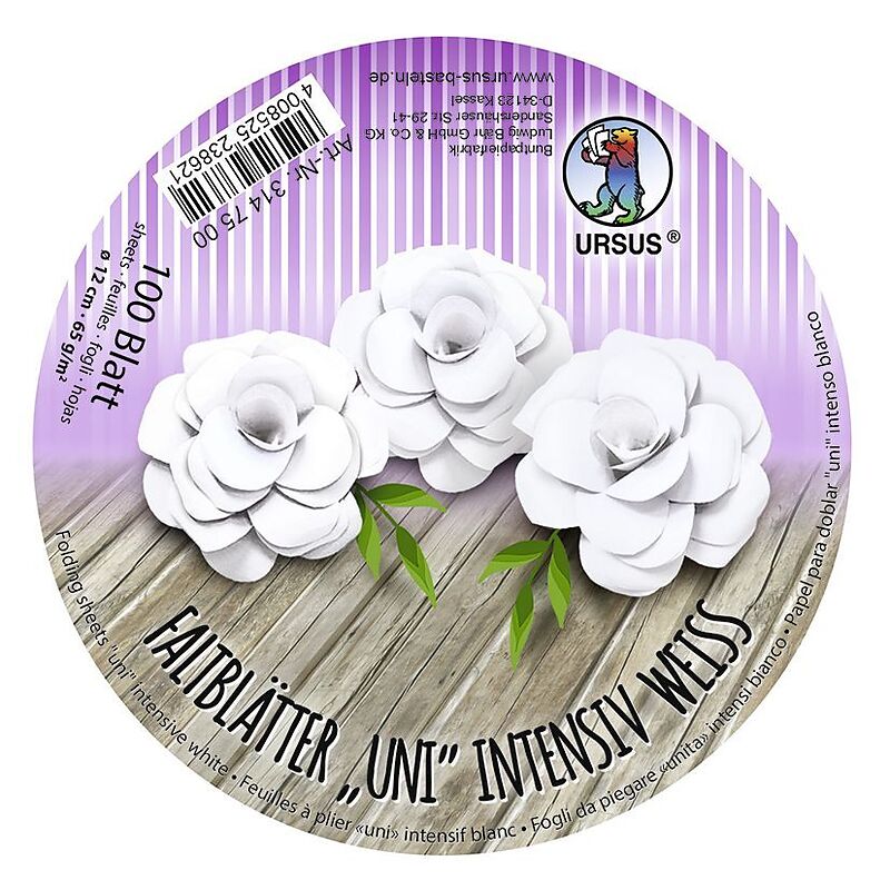 100 Faltblätter "Uni" intensiv aus Plakatkarton (65 g/m, Durchmesser: 12 cm, weiß) - "Made in Germany" URSUS-Qualität: durchgefärbt, hohe Farbbrillanz und Lichtbeständigkeit 100 Blatt