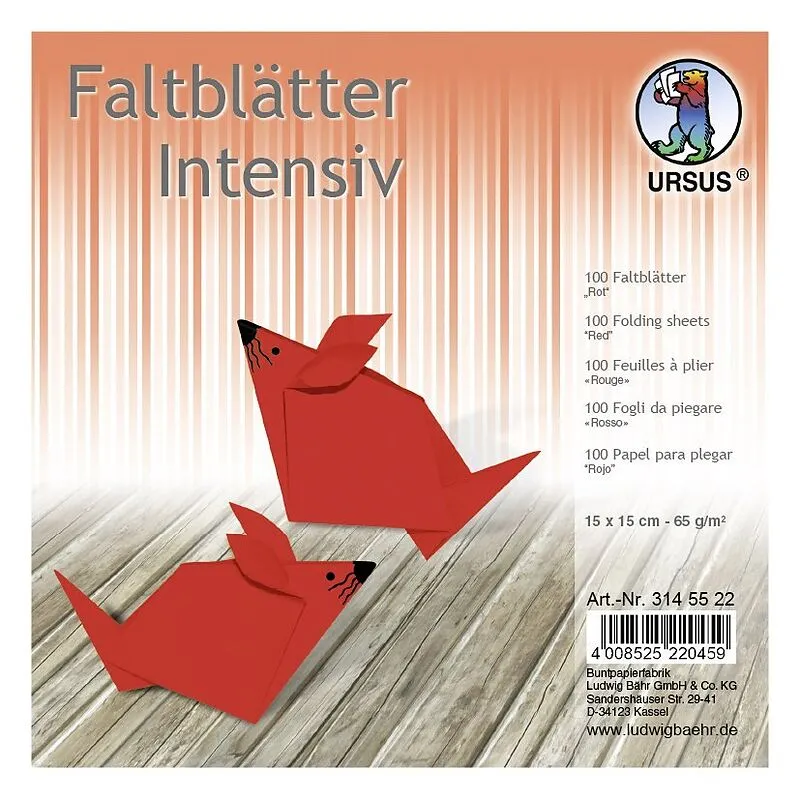100 Faltblätter "Uni" intensiv aus Plakatkarton (65 g/m, Format: 15 x 15 cm, rot) - "Made in Germany" URSUS-Qualität: durchgefärbt, hohe Farbbrillanz und Lichtbeständigkeit 100 Blatt