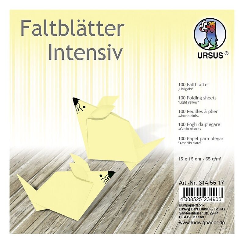 100 Faltblätter "Uni" intensiv aus Plakatkarton (65 g/m, Format: 15 x 15 cm, hellgelb) - "Made in Germany" URSUS-Qualität: durchgefärbt, hohe Farbbrillanz und Lichtbeständigkeit 100 Blatt