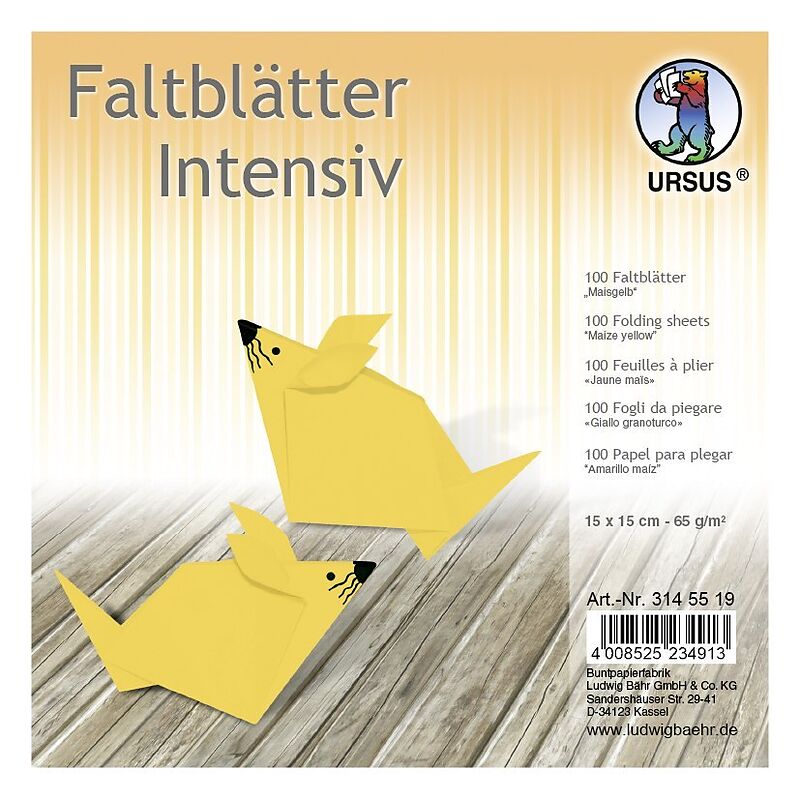 100 Faltblätter "Uni" intensiv aus Plakatkarton (65 g/m, Format: 15 x 15 cm, maisgelb) - "Made in Germany" URSUS-Qualität: durchgefärbt, hohe Farbbrillanz und Lichtbeständigkeit 100 Blatt
