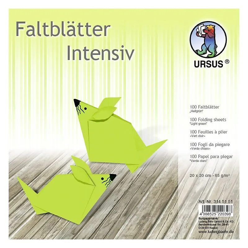 URSUS Falten Faltblätter Uni intensiv, Plakatkarton, 65 g/m, 20 x 20 cm, hellgrün