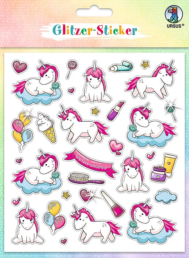 Glitzer-Sticker Fun - 4 Stickerbögen, 15x16,5 cm , selbstklebend, teilweise foleinveredelt oder beglittert