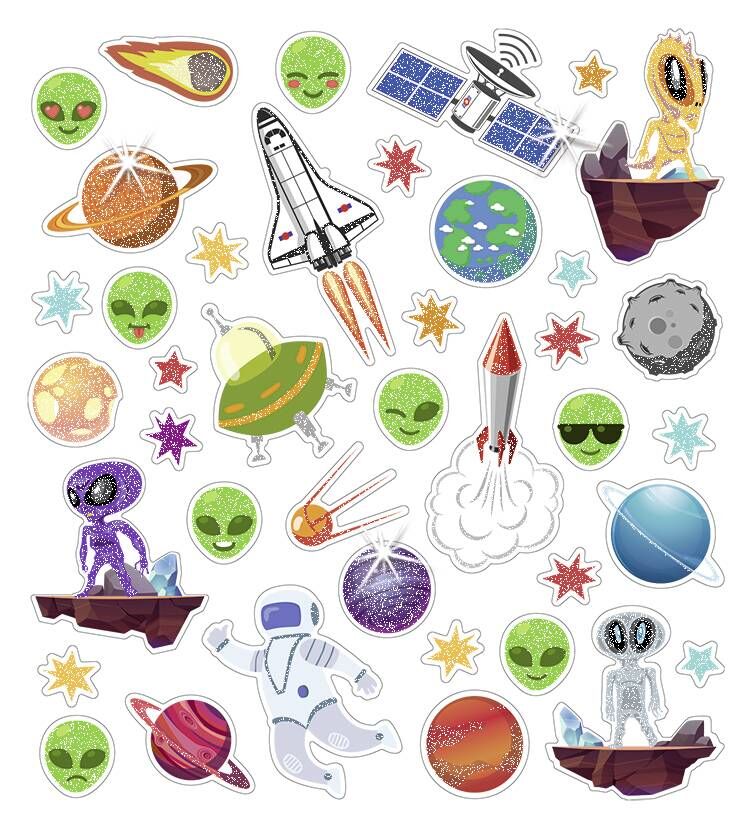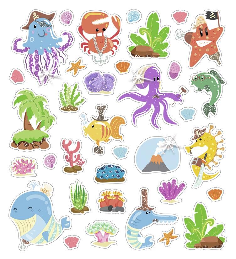Glitzer-Sticker Fun - 4 Stickerbögen, 15x16,5 cm , selbstklebend, teilweise foleinveredelt oder beglittert