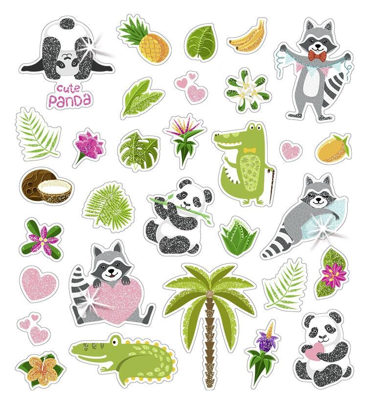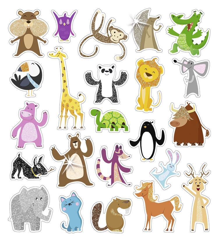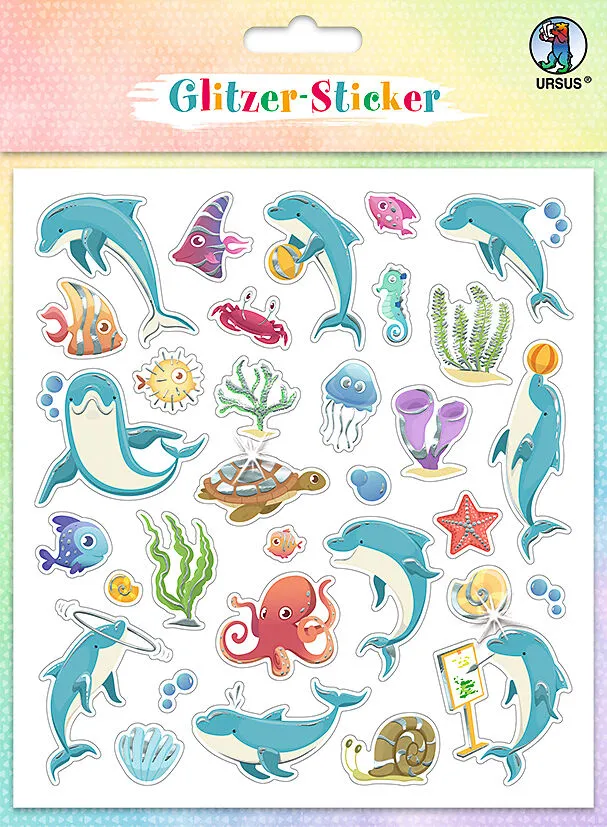 Glitzer-Sticker Fun - 4 Stickerbögen, 15x16,5 cm , selbstklebend, teilweise foleinveredelt oder beglittert