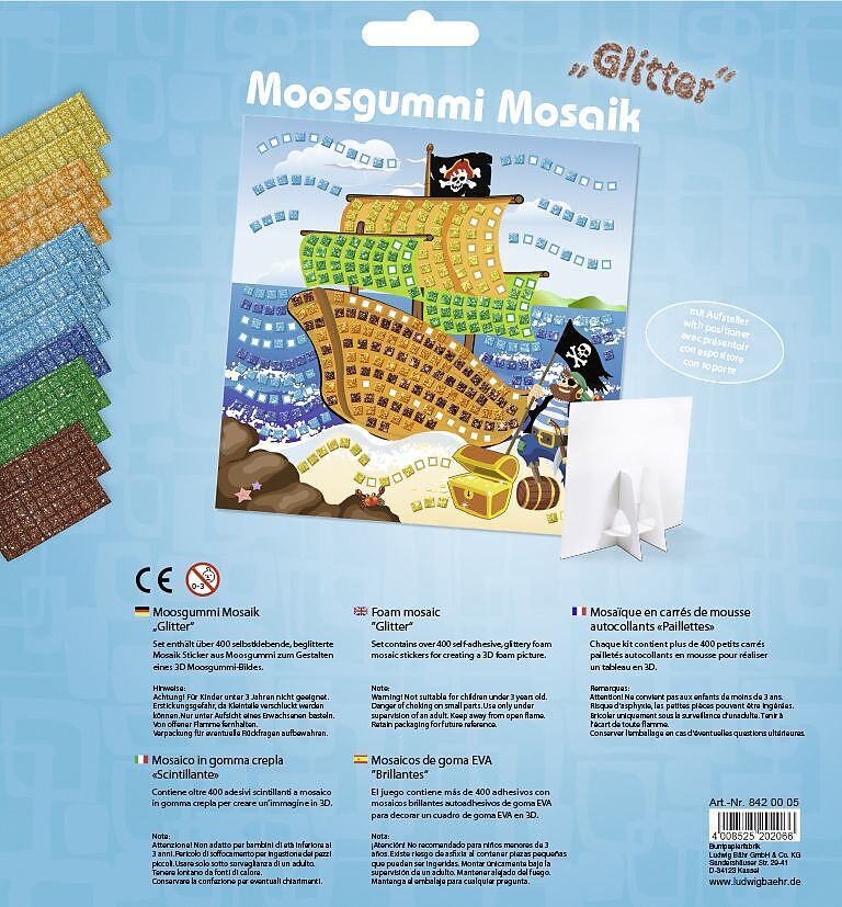 Set zum Gestalten eines MoosgummiBildes (Größe: 25 x 25 cm). Verpackung mit Euro-Lochung. 1 Vorlage, 1 Aufsteller und 432 Moosgummisticker sortiert in verschiedenen Farben inklusive Bastelanleitung Inhalt Inhalt: Set enthält Materialien uzum Gestalten eines Mo...