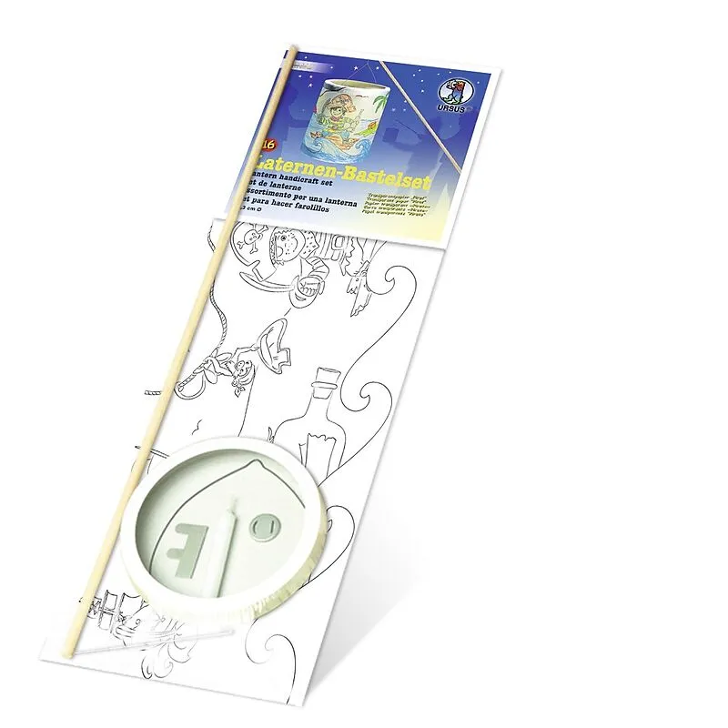 Set enthält Materialien zum Basteln und Ausmalen einer Laterne (Durchmesser: ca. 15,3 cm, Höhe: 20 cm). - "Made in Germany" 1 Laternenzuschnitt (Transparentpapier, Format 20 x 50 cm), 1 Laternendeckel und -boden ( 15,3 cm), 1 Laternenstab (Holz), 1 Laternentra...
