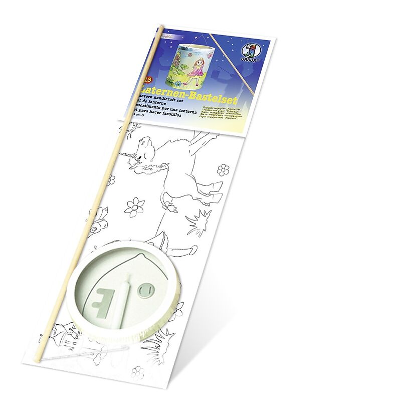 Set enthält Materialien zum Basteln und Ausmalen einer Laterne (Durchmesser: ca. 15,3 cm, Höhe: 20 cm). - "Made in Germany" 1 Laternenzuschnitt (Transparentpapier, Format 20 x 50 cm), 1 Laternendeckel und -boden ( 15,3 cm), 1 Laternenstab (Holz), 1 Laternentra...