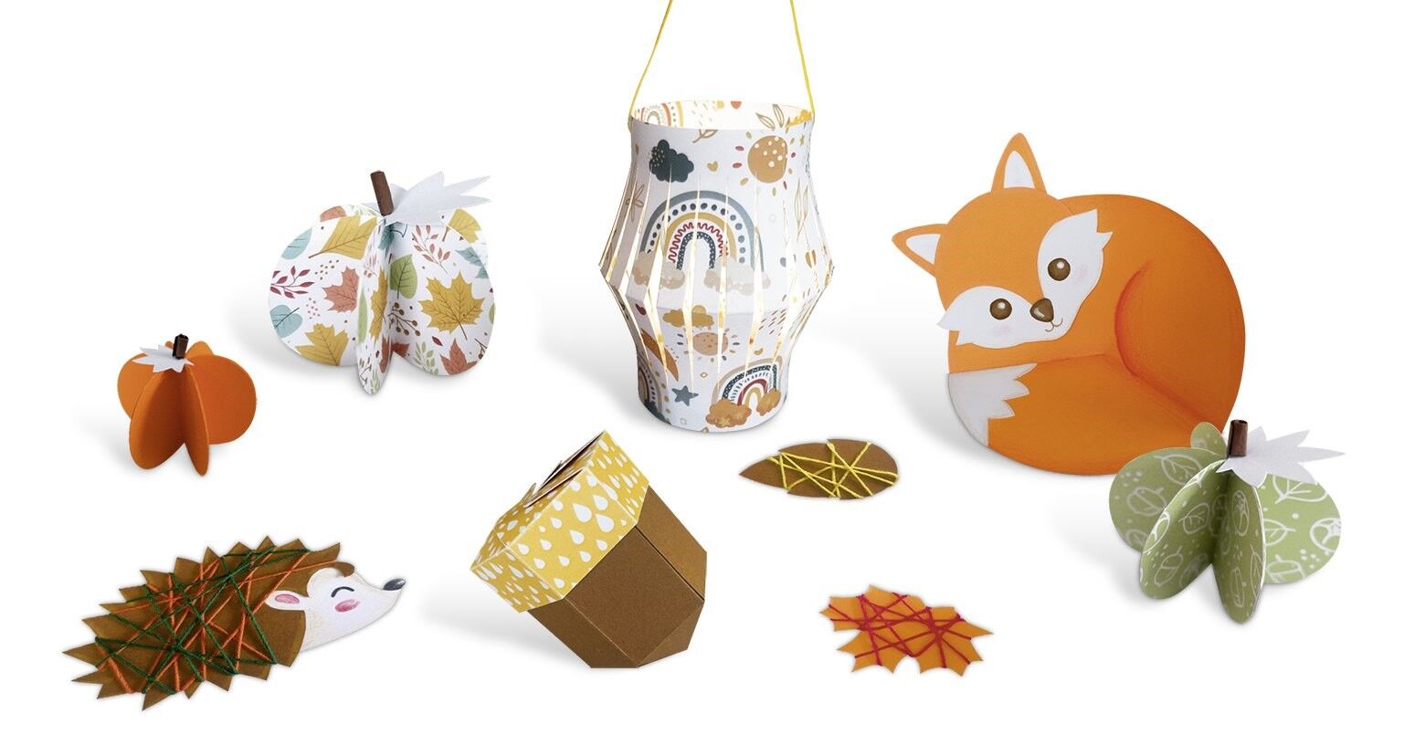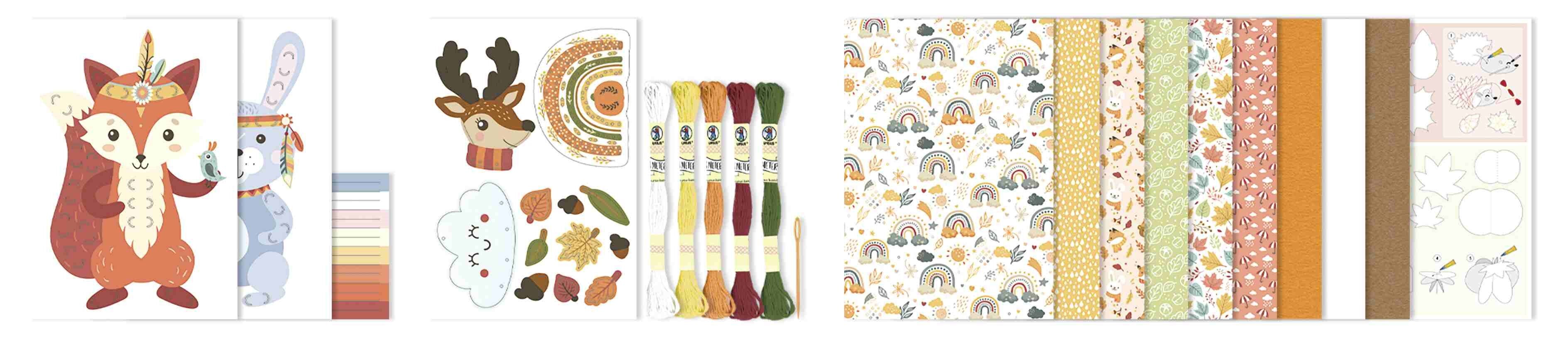 Papier Bastelset Woodland Friends. Das Set enthält Materialien für kreative Bastelideen inklusive Schnittmusterbogen und Bastelanleitung.