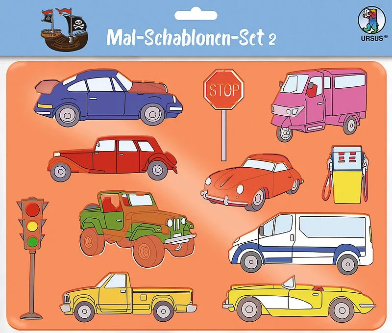 Sechs transparente Mal-Schablonen und sechs farbige Motivvorlagen für Jungen. Mal-Schablonen Sets Spannende Farmtiere, schnelle Autos, magische Figuren, lustige Buchstaben und viele andere tolle Motive: die Mal-Schablonen-Sets bieten viel Spiel für kreative Id...