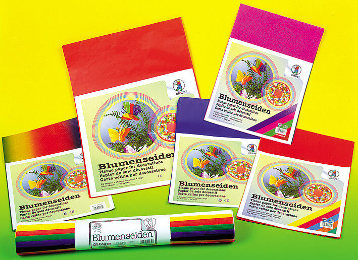 Seidenpapier Mit der Blumenseide von URSUS können Sie Ihrer Kreativität freien Lauf lassen. Ideal zum Basteln von Blumen und vielem mehr! Blumenseide ist nicht nassfest und kann abfärben! 2x gefalzt auf 25 x 35 cm, weiss Masse: 50 x 70 cm Beutel à 10 Stk....