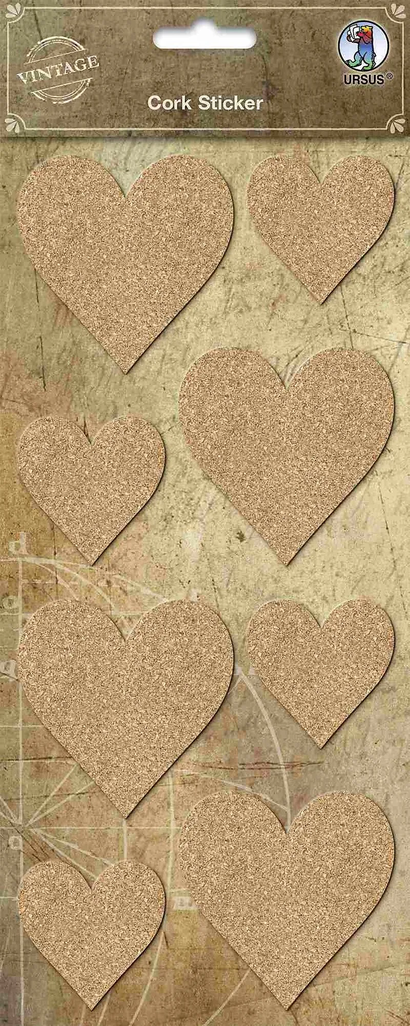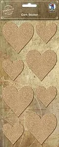 URSUS Vintage Kork-Sticker Herz, 1 Stickerbogen (12 x 26 cm) mit 8 Stickern