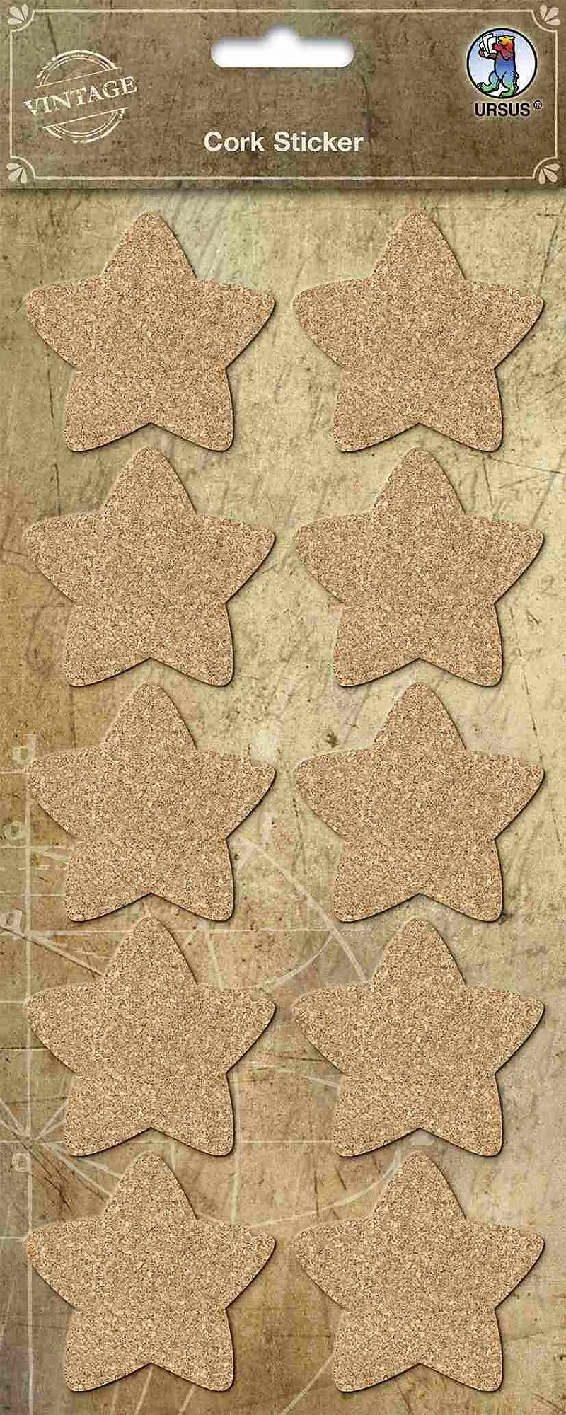 URSUS Vintage Kork-Sticker Stern, 1 Stickerbogen (12 x 26 cm) mit 10 Stickern