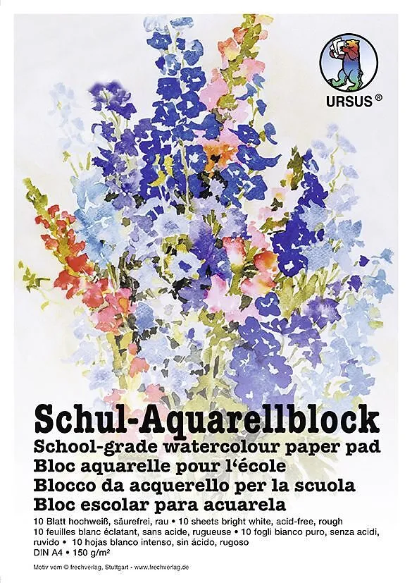 Aquarellblock (Zeichenpapier, 150 g/m, Format DIN A4, 10 Blatt, hochweiß) - URSUS-Qualität: extra starkes Zeichenpapier (Frischzellulose), säurefrei - "Made in Germany"