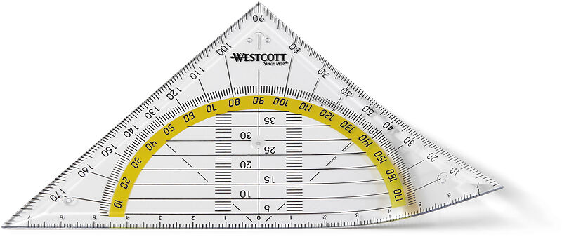 Das flexible Geodreieck von WESTCOTT® besitzt eine farbig hinterlegte und gegenläufige Gradskala und Tuschnoppen. Es besteht aus besonders flexiblem und bruchsicherem Material.