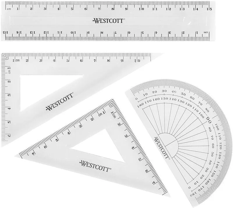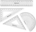 Geometrie-Set, 4-teilig, inkl. Lineal, Zeichendreiecke 60° / 45°, Winkelmesser 180°, transparent
