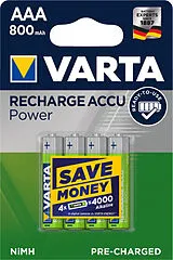 • VARTA Batterie Akku 56703101404 AAA/HR03, 800 mAh, 4 Stück