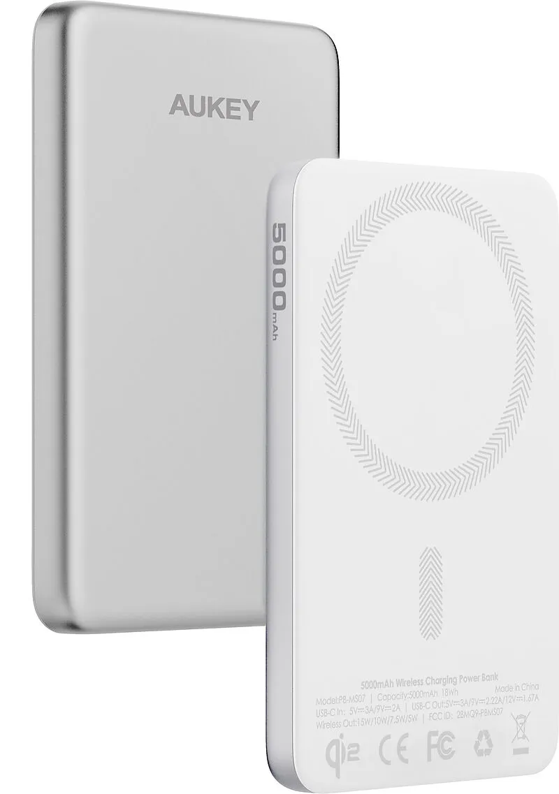 AUKEY MagFusion Slim 5000mAh PB-MS07 SW Powerbank Qi2 Wireless,White
