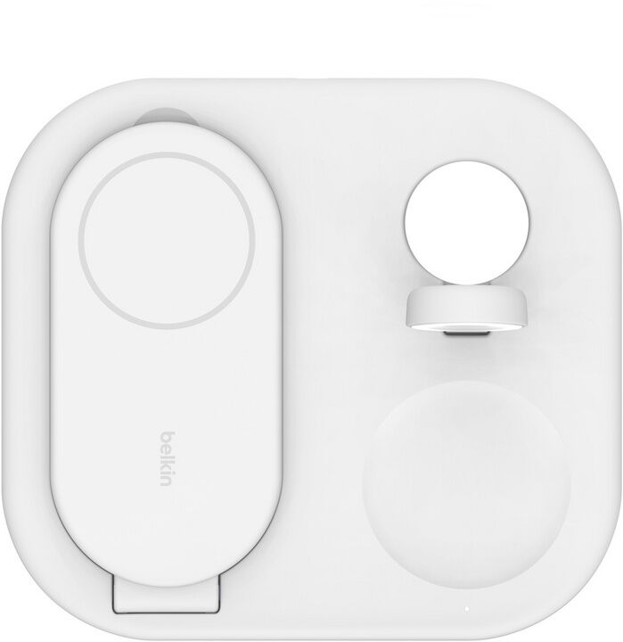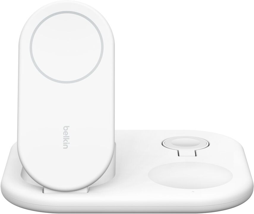 Laden Sie Ihre wichtigsten Geräte mit einem praktischen einklappbaren Ständer. Mit dieser Ladestation laden Sie nicht nur Ihr iPhone 15, 14, 13 oder 12 schnell kabellos mit 15 W auf, sondern auch Ihre Apple Watch sowie AirPods mit 5 W. Dank der magnetischen Qi...