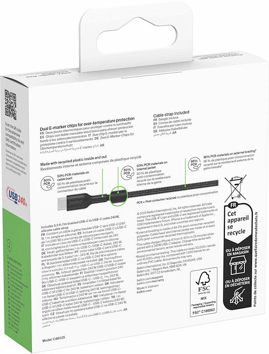 Das neue geflochtene BoostCharge Pro USB-C-/USB-C-Kabel (240 W) ist auf Nachhaltigkeit und Robustheit ausgelegt. Ein iPhone 16 lässt sich mithilfe der Schnellladefunktion in 25 Minuten und ein MacBook Pro 2021 in 30 Minuten von 0 auf 50 % aufladen. Dieses gefl...