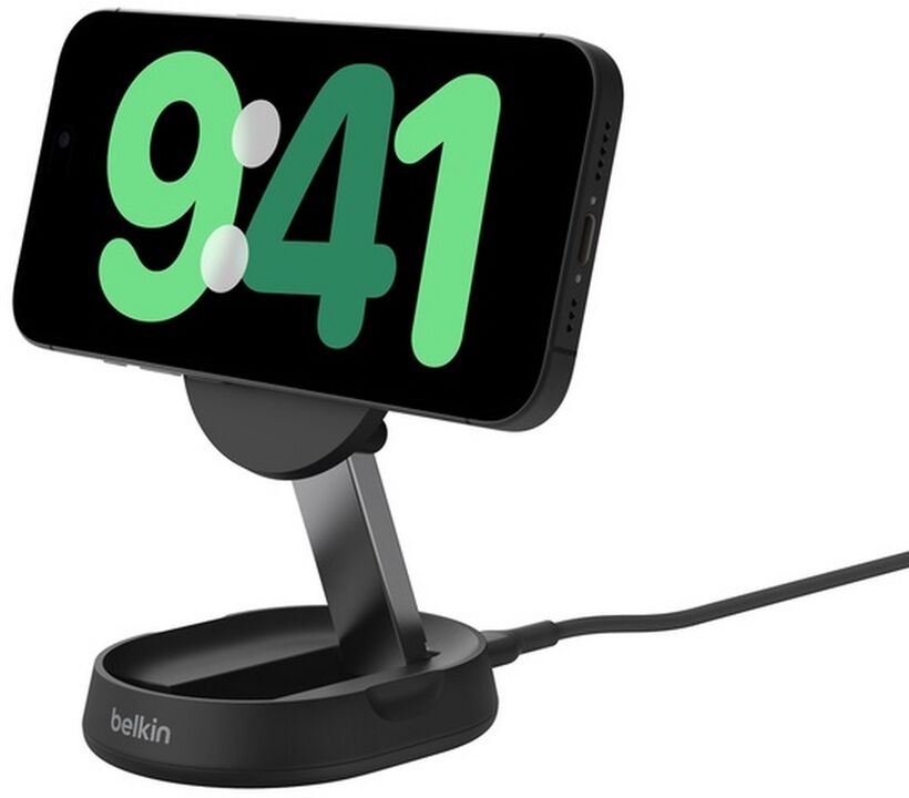 Laden Sie Ihr iPhone oder ein anderes Gerät, das mit Qi2 kompatibel ist, schnell mit bis zu 15 W auf. Qi2-Technologie optimiert zudem den Energieverbrauch und schont den Akku des Geräts, um seine Lebensdauer zu verlängern. Passen Sie die Neigung der Ladefläche...