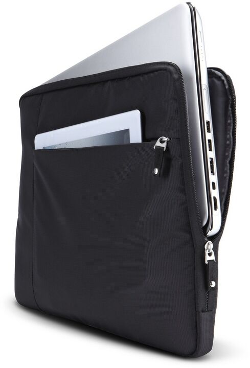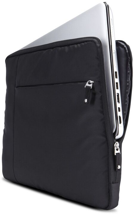 Noch nie war doppelt so wenig. Diese elegante Hülle nimmt nicht nur ein 15,6-Zoll-Laptop auf, sondern hat noch eine vordere Reissverschlusstasche, die Platz für ein iPad/10,1-Zoll-Tablet bietet oder als zusätzlicher Stauraum für Zubehör und Kopfhörer genutzt w...