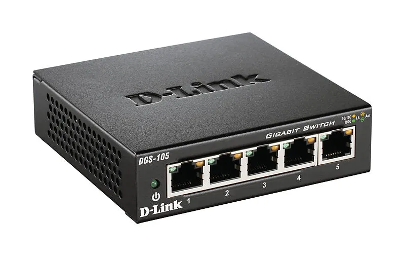 DGS-105 - 5-Port Gigabit Switch Switch Bauart: Desktop • Anzahl Ports: 5 • Max. Port Geschwindigkeit: 1000 Mbit/s • Switching Kapazität: 10 Gbit/s • MAC Adresstabellengrösse: 2000 • Anwendungsbereich: Heimgebrauch oder professioneller...