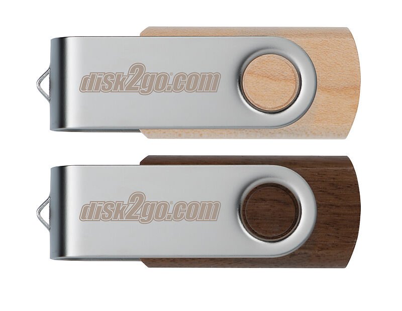 Gut geschützt durch die Verschlusskappe mit raffiniertem Drehverschluss, überzeugt der disk2go® wood mit seinem natürlich eleganten Holzgehäuse. Die Kappe ist aus matt gekörntem Aluminium.
