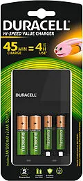 Hi-Speed Value Ladegerät 4 Stunden Nutzung nach nur 45 Minuten Ladezeit! Eine simple, sichere und zuverlässige Lösung für Ihren täglichen Bedarf an Power, dieses Ladegerät kann 4 AA Batterien innerhalb von 4 Stunden aufladen. 5-Jahres-Garantie von Duracell, A...