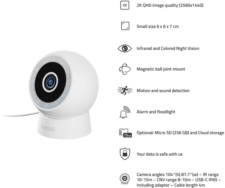 Die Hombli Compact Cam ist ebenso unauffällig wie einfach zu installieren. Sie lässt sich leicht einstellen und erzeugt ein scharfes Bild in 2K. Dabei erkennt sie auch Bewegungen, sendet Alarme und zeichnet die Aktion auf. Alles, was Sie erwarten, und das im k...