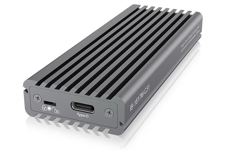 Externes Type-C TM Gehäuse für M.2 NVMe SSD Mit dem externen USB 3.1 Typ-C TM Gehäuse IB-1817M-C31 kann eine NVMe SSD schnell und einfach mitnehmen. Es erlaubt Zugriff auf M.2 Datenträger von bis zu 2 TB, egal mit welchem Hostcomputer es verbunden wird. Hochw...