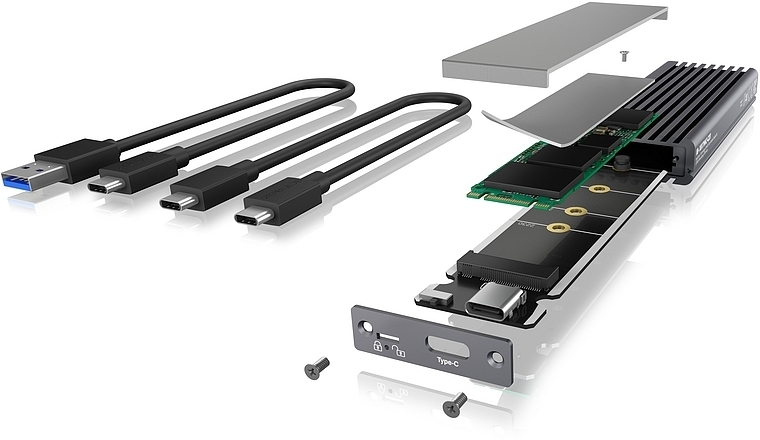 external case Gehäuse für 1x M.2 NVMe & SATA mit USB 3.1 (Gen 2) Type-C® & Type-A Anschluss, Schreibschutz und Wärmeleitpad NVMe & SATA: Das ICY BOX IB-1817MC-C31 ist die richtige Wahl für Ihre M.2 SSD. Unser Gehäuse ist kompatibel mit NVMe und SA...