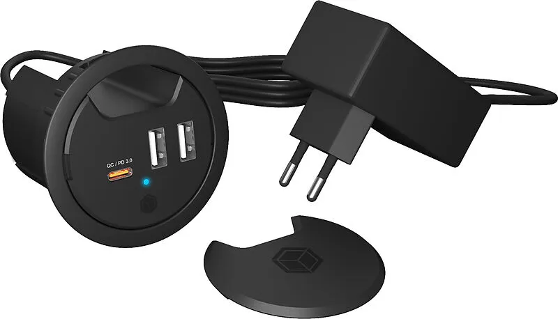 ICY BOX In-Desk USB Hub 60 mm black IB-HUB1407 2x USB-A 10W PD 3.0 & QC 3.0