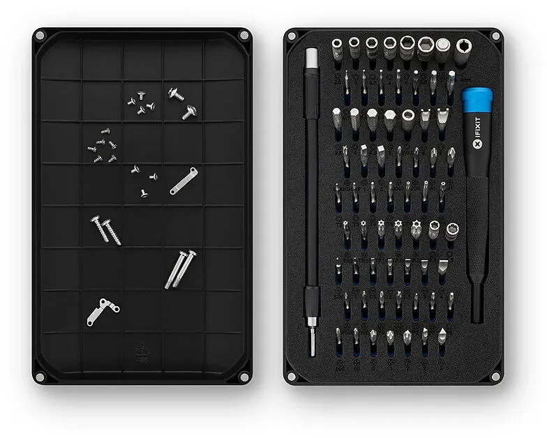 Mako 64 Bit Driver Kit Das Mako Schraubendreher-Set enthält den 4-mm-Aluminium-Schraubendrehergriff von iFixit mit magnetischer Bitaufnahme, geriffeltem Griff und drehbarem Oberteil sowie 64 Präzisions-Schraubendreherbits und eine flexible Verlängerung. Wir h...