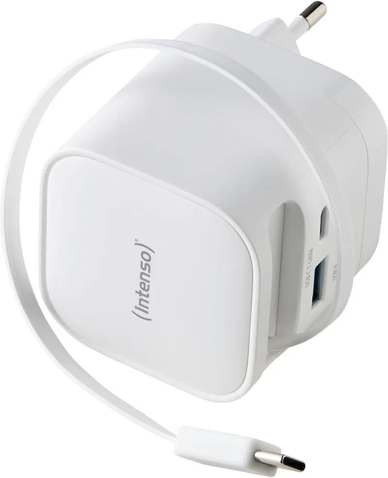INTENSO Power Charger 65W GaN 7806522 retract. USB-C Cable white