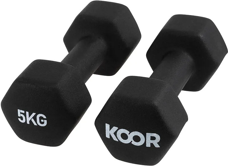 Zwei Hanteln aus massivem Gusseisen|Mit besonders griffigem, geschäumten PVC überzogen|Unempfindlich gegen Schweiss und Kratzer|Breite: 9 cm