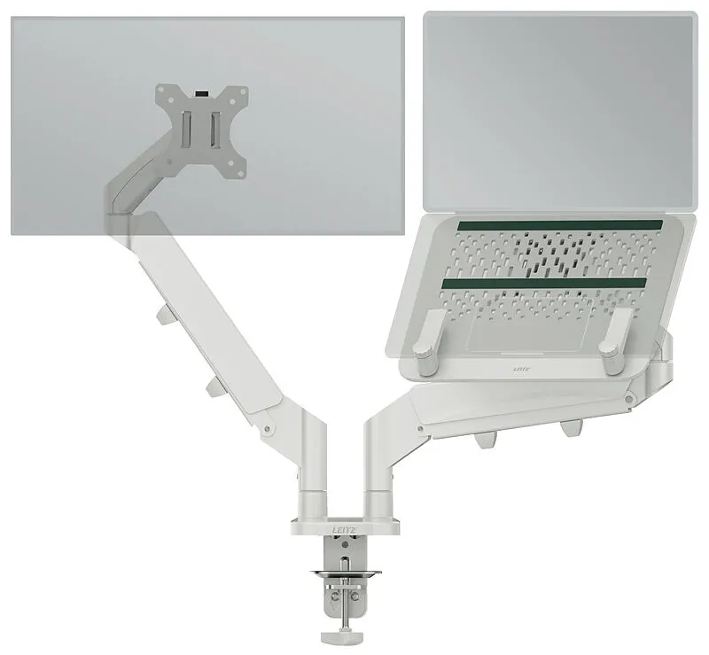 ERGO - Monitorarm Der IGR- (Monitorarm) und TÜV-vertifizierte Leitz Ergo Platzsparende Dual Monitorarm mit Laptoparm wirkt sich positiv auf die Körperhaltung aus, fördert die richtige Ausrichtung der Augen und unterstützt den Nacken- und Schulterkomfort, wenn...