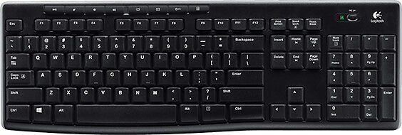 Wireless Keyboard Kabellose Tastatur mit vertrautem Tastatur-Layout in Standardgrösse und Nummernblock, acht Sondertasten für häufig verwendete Funktionen und Programme, einer Batterielebensdauer von bis zu 2 Jahren, winzigem Unifying-USB-Empfänger, USB-Ansch...
