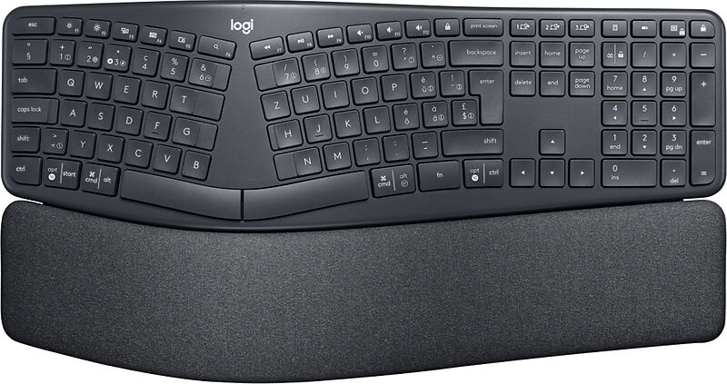 Ergo K860 kabellose Tastatur Die Ergo K860 von Logitech ist eine ergonomische Tastatur für eine gesunde und natürliche Haltung beim Tippen. Das fortschrittliche, ergonomische Design der Tastatur fördert eine entspannte Schreibhaltung, indem sie die Beugung de...