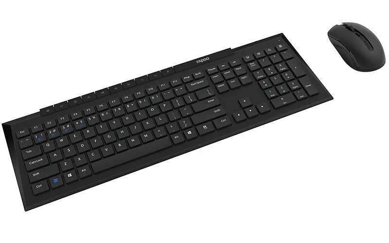 8210M - Optical Deskset Dieses stilvolle Schreibtischset mit spritzwassergeschütztem Design, bestehend aus Tastatur und Maus, sendet über die drahtlose Multimodus-Verbindung von Rapoo mittels einer zuverlässigen 2,4- GHz- Drahtlosübertragung, Bluetooth 3.0 od...