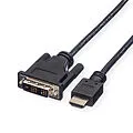 DVI Kabel ROLINE HDMI High Speed zu DVI-D Monitorkabel für das Verbinden eines Ultrabooks, Notebooks, Laptops oder PCs mit einem Monitor, TV, Beamer oder Projektor - für Bildschirmübertragungen in exzellenter Qualität mit einer Auflösung von bis zu 1920x1080 ...