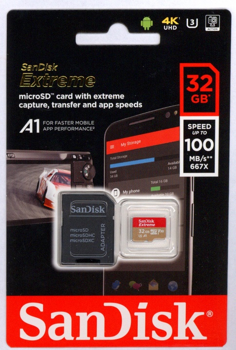 EXTREME - microSDHC Card Jetzt können Sie mehr spannungsgeladene Videos in Full HD oder 4K UHD mit einem Android-Smartphone, einer Wechselobjektivkamera, einer Drohne oder einer GoPro-Action-Kamera aufnehmen. Die SanDisk Extreme microSD UHS-I Speicherkarten w...