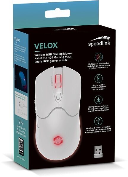 VELOX - Gaming Mouse Die wiederaufladbare, kabellose VELOX Gaming-Maus von Speedlink katapultiert das Gameplay auf ein neues Level und gewährt grenzenlose Freiheit. Mit dem präzisen, einstellbaren Pixart Sensor PAW3212 mit bis zu 4.800 dpi und einem leistungs...