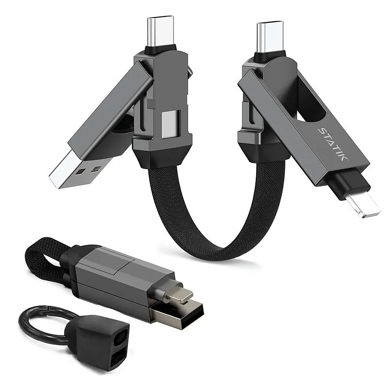 HEXCHARGE - Ladekabel Universelle Kompatibilität. Schliessen Sie jedes tragbare Gerät problemlos an jede Stromquelle an. Dieses 4-in-1-Multi-Ladekabel bietet unvergleichliche Vielseitigkeit: USB auf USB-C, USB auf Lightning, USB-C auf USB-C und USB-C auf Ligh...