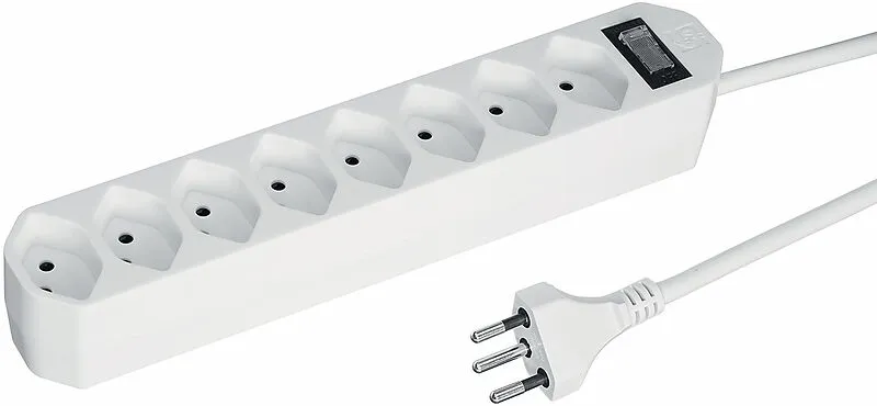 Die Steckdosenleiste ist 3-polig mit Leuchtschalter und 1.5 m Kabel.