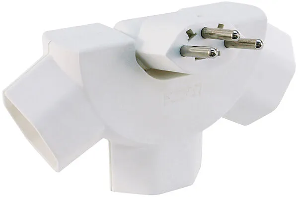 Der sternenförmige Abzweistecker mit Kinderschutz hat 3 Stecker und ist kippbar.