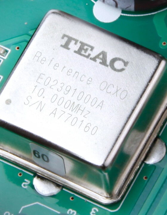 Da die Temperatur einen grossen Einfluss auf die Genauigkeit des Quarzoszillators hat, sind die Minimierung von Temperaturschwankungen und die Aufrechterhaltung eines idealen Pegels extrem wichtig, um ein genaues Taktsignal zu erzeugen. Der CG-10M verwendet einen innovativen ofengesteuerten Quarzoszillator, den TEAC Reference OCXO, um durch Temperaturänderungen verursachte Schwankungen der Schwingungsfrequenz zu reduzieren.