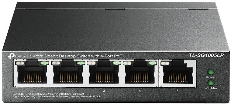 TL-SG1005LP, 5-Port-Gigabit-Desktop-Switch 5 × 10/100/1000 Mbit / s RJ45-Ports Überträgt mit vier PoE + -Ports Daten und Strom über ein einziges Kabel Funktioniert mit IEEE 802.3af / bei kompatiblen PDs 802.1p / DSCP-QoS ermöglichen einen reibungslosen, laten...