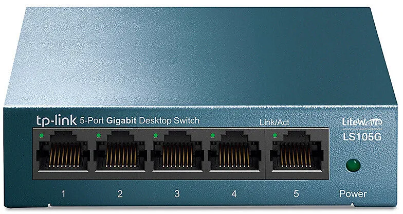 STEEL CASE - 5-Port Gigabit Desktop Switch LiteWave 5-Port Gigabit Desktop Switch, 5 Gigabit RJ45 Ports, Desktop Steel Case 5 Gigabit-RJ45-Ports mit Autoabstimmung und Auto-MDI/MDIX Flusskontrolle nach IEEE802.3x für zuverlässige Datenübertragung Metallgehäus...